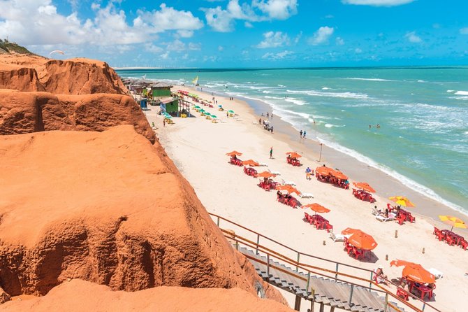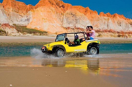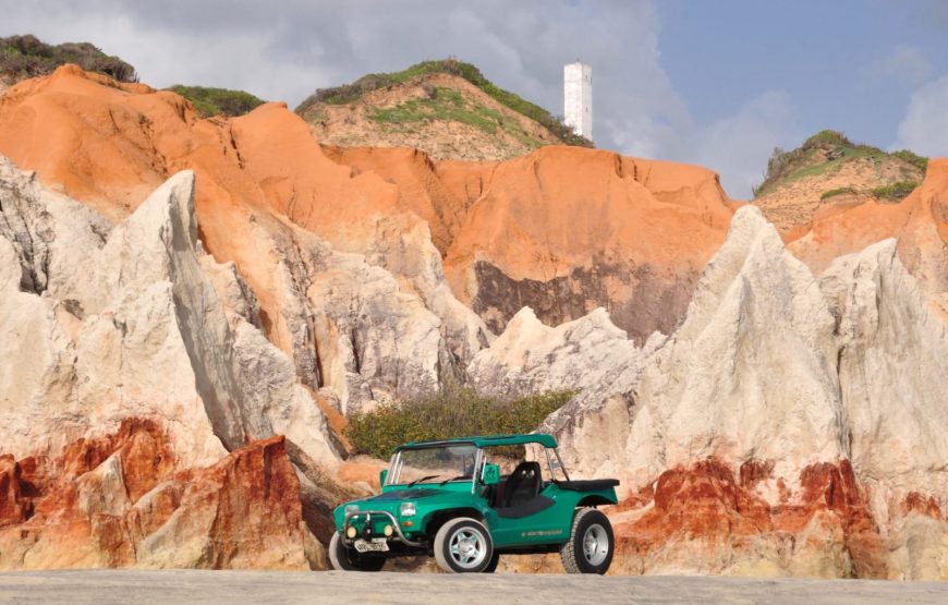 Saída de buggy do hotel pela manhã, conforme o horário da maré do dia. Faremos nossa primeira parada na Praia de Morro Branco, famosa por suas areias coloridas, e em seguida seguiremos para a Praia das Fontes.